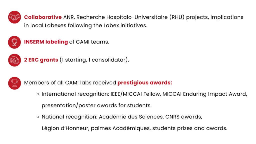 Dissemination activities were strengthened through multiple initiatives, including the sponsorship of Summer Schools such as the 1st Summer School on Deformation in Robotics organized by the Cristal Lab, and active participation in major conferences like the 48th Biomechanics Society Congress, CAOS, MICCAI, CRAS, IHM’24, and RITS. The community also contributed to international challenges, notably M2CAI and BraTS at MICCAI.